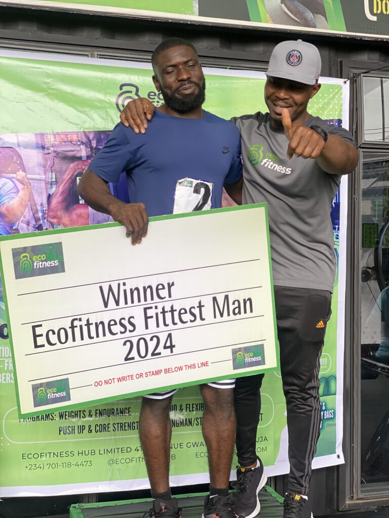 The Fittest Man/Woman Competition stands out as one of Ecofitness’ signature events, designed to celebrate strength, endurance, and overall wellness within the community. Held on August 24th, 2024, at the Ecofitness Hub in Gwarinpa, Abuja, the event featured exciting challenges ranging from weights and endurance to cardio, flexibility, push-ups, core strength, and the strongman/strongwoman contest.